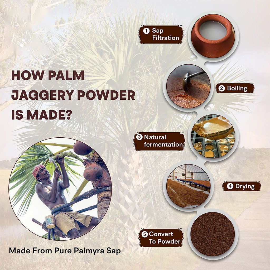 Organic Palm Jaggery Powder | 2X Advantage – Naturally Fermented | Baby-friendly | Non-GMO | Unrefined | Chemical Free | Low (GI) – 35